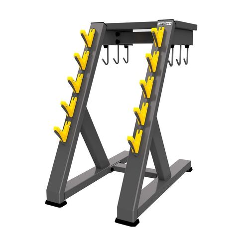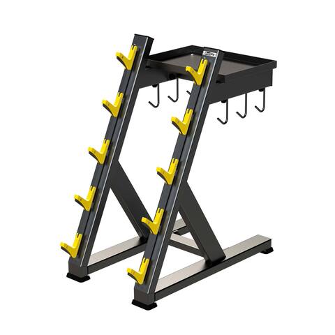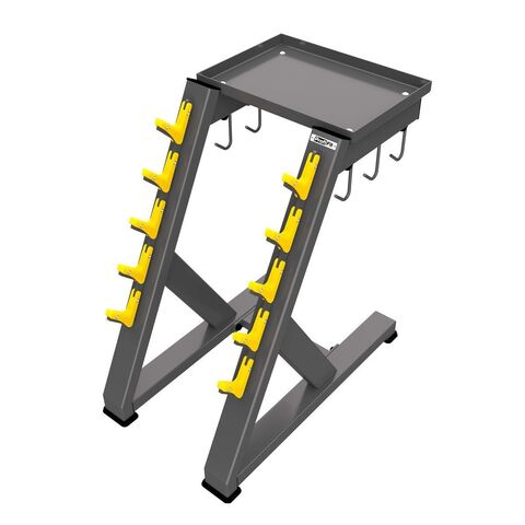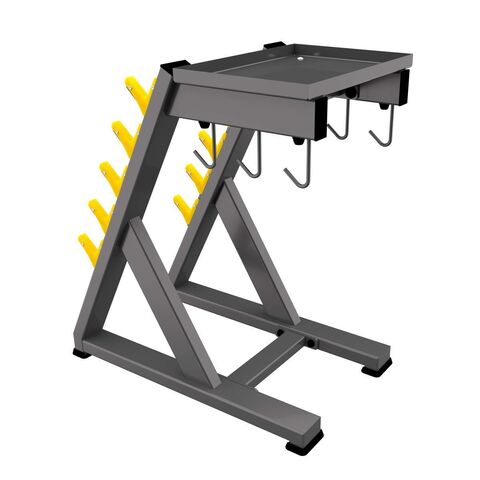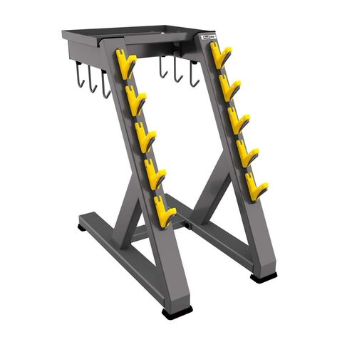 Стойка для хранения позволяет поддерживать порядок в зоне силовых тренировок, экономит место, обеспечивает безопасность хранения штанг и аксессуаров. Стойка выполнена из сверхпрочного прямоугольного профиля 100*50*3 мм с высококачественной двухслойной технологией порошковой окраски. Цвет рамы: Графит (другие цвета-опционально). Торцы профиля закрыты пластиковыми заглушками с фиксаторами. 5 пластиковых опор для грифов, защищающих корпус стойки от сколов покрытия и царапин. 6 крючков для аксессуаров. 1 площадка для мелких аксессуаров. Габариты (Д*Ш*В) мм: 1195*600*1065 Вес нетто: 70 кг. Габариты тренажера в упаковке 1 место (Д*Ш*В): 1280*1150*300 мм Объем 1 место: 0,45 м3. Производитель: DHZ Гарантия: 1 год на фурнитуру, 5 лет на раму.