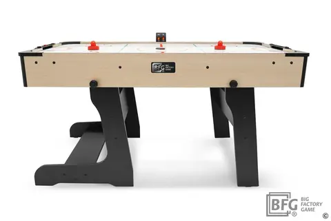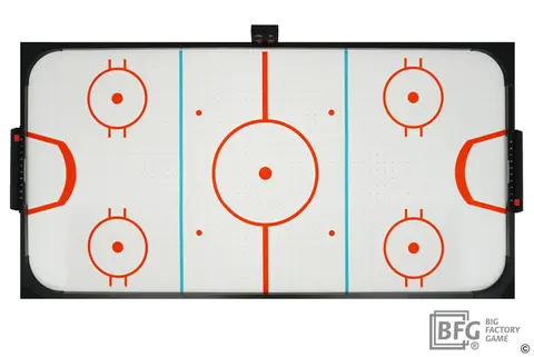 Аэрохоккей BFG Ice Transform 5 разработан и изготовлен специалистами инженерами компании BFG. Самая важная деталь аэрохоккея это - игровое поле. От качества и метода производства этой детали зависит, насколько интересно, захватывающе и увлекательно будет проходить игры. В наших игровых полях применены сразу две новейшие технологии, разработанные инженерами и технологами компании BFG. 1. 3d layer. Поверхность игрового поля состоит из 3 слоев, поочередно соединенных друг с другом. Данный метод позволяет нанести разметку между вторым и третьим слоем, что исключает истирание нанесенного изображения во время всего срока службы. Кроме того используемые материалы обеспечивают длительный период эксплуатации и улучшают скольжение шайбы. 2. Smart Flow. Благодаря уникальной системе распределения воздушного потока, вентилятор, питающийся от сети 220 вольт нагнетаете воздух по всей игровой поверхности, исключая появление мертвых зон во время игры. Шайба скользит как на профессиональном оборудовании. Игровой стол облада