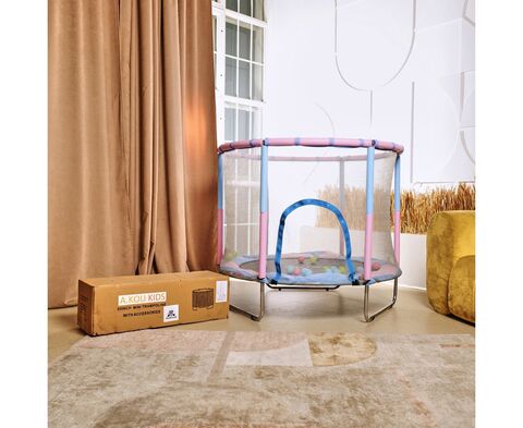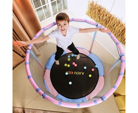 Яркий и красочный батут DFC A.KOU Kids 55” станет настоящим центром развлечения для ваших детей, принося массу радости и удовольствия! Идеально подойдет для детей весом до 50 кг, позволяя им наслаждаться прыжками и забавными играми на свежем воздухе или в помещении! В комплекте цветные мячики из мягкого пластика. Поверхность батута изготовлена из высококачественного полипропилена, способного выдерживать ультрафиолетовые лучи, что гарантирует долговечность и надежность изделия. Внешняя защитная сетка высотой 90 см обеспечивает безопасность пользователей, предотвращая возможные выпады за пределы батута. Она легко открывается и закрывается с помощью специального замка и надежно фиксируется на стойках, выполненных из высокопрочной стали. Батут оснащен 36-ю пружинами диаметром 2,5 мм и длиной 92 мм, которые обеспечивают мягкость и плавность прыжков. Кроме того, батут имеет прочный защитный кожух из полиэстера, который защищает прыгунов от травм и смягчает приземление. Основная рама батута состоит из 6-ти прочных стальных труб диаметром 25 мм и толщиной 1 мм, что обеспечивает устойчивость и безопасность при использовании. U-образные ножки и стойки для защитной сетки также выполнены из высокопрочной стальной трубы диаметром 25 мм с толщиной стенок 0,8