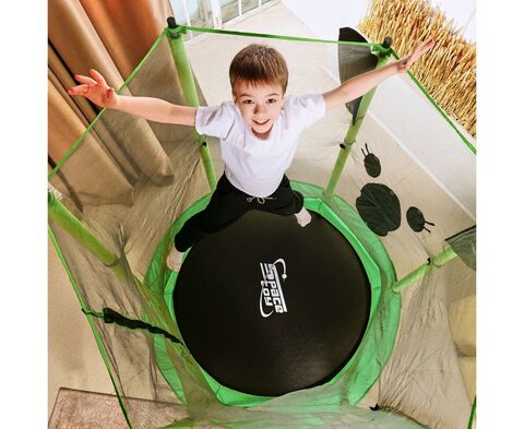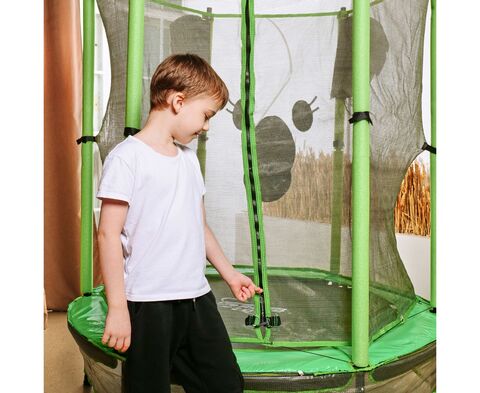 Детский батут DFC ANIMALS 55" Коала станет настоящим центром развлечения, принося массу радости и удовольствия! Идеально подойдет для ребёнка весом до 35 кг, позволяя ему наслаждаться прыжками и забавными играми на свежем воздухе или в помещении! Поверхность батута изготовлена из высококачественного полипропилена, способного выдерживать ультрафиолетовые лучи, что гарантирует долговечность и надежность изделия. Внешняя защитная сетка высотой 126 см обеспечивает безопасность пользователей, предотвращая возможные выпады за пределы батута. Она легко открывается и закрывается с помощью специального замка и надежно фиксируется на стойках, выполненных из высокопрочной стали. Необычный дизайн сетки в виде коалы особенно порадует самых маленьких и требовательных прыгунов! Батут оснащен 30-ю верёвочными пружинами, которые обеспечивают мягкость и плавность прыжков, а также особенно безопасны для детей. Кроме того, батут имеет прочный защитный кожух из полиэтилена, который защищает прыгунов от травм и смягчает приземление. Основная рама батута состоит из 6-ти прочных стальных труб диаметром 25 мм, что обеспечивает устойчивость и безопасность при использовании. U-образные ножки и стойки для защитной сетки также выполнены из высокопрочной стальной трубы диаметром 25 мм.