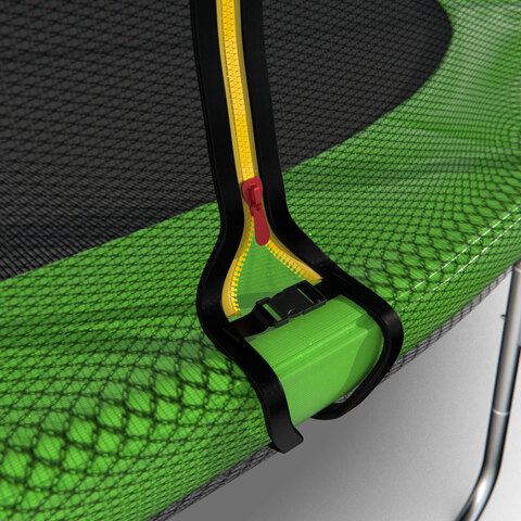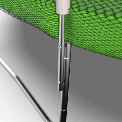 Обновленный батут популярной серии DFC TRAMPOLINE FITNESS . Батуты DFC давно известны на российском рынке. Они зарекомендовали себя как надежные, выполненные из качественных материалов, неприхотливые в использовании. Модель с внешней защитной сеткой и яркой зеленой расцветкой. Лестница в комплект не входит . Рекомендуем приобрести отдельно модели на 2 или 3 ступени, в зависимости от высоты батута. Высота батутов этой серии от 46 до 85 см. В комплекте с батутом поставляются ключи для сборки и подробная инструкция на русском языке. На батуты DFC предусмотрена гарантия сроком 12 месяцев. Батуты упакованы в прочную картонную упаковку из 5-слойного картона. Надёжность конструкции Особое внимание при изготовлении батутов компания DFC уделяется качеству. Надежность конструкции обеспечивается прочной рамой с оцинкованным покрытием, нанесенным методом холодной гальванизации.  Рама изготовлена из круглой трубы диаметром 38 мм и толщиной 1,5 мм. Пружины Пружины выполнены из высококачественной стали, которые имеют повышенную защиту от износа и растягивания, тем самым позволяя продлить срок службы батута. На батуте используется 108 пружин длиной 136 мм и диаметром 3 мм. Защитная сетка Внешняя защитная сетка, поставляемая в комплекте, обеспечит безопасность вам и вашим близким от случайного падения, изготовлена из высокопрочного нейлона, надежно крепится к  стойкам батута. Стойки под защитную сетку в количестве 12 штук, диаметром 25 мм и толщиной 1,2 мм. Высота защитной сетки 170 см. Для защиты детей вход/выход через сетку выполнен на молнии с фиксирующими защелками с внешней стороны. Прыжковое полотно и кожух Для обеспечения безопасности пользователя, пружины закрыты защитным чехлом (защитным матом). Высота батута от пола до прыжкового полотна 85 см. Диаметр батута составляет 487,68 см. Прыжковая поверхность выполнена из самого прочного на настоящий момент полипропилена последнего поколения "Перматрон". Имеет повышенную устойчивость к UV-излучению. Батут выдерживает вес пользователя до 150 кг.