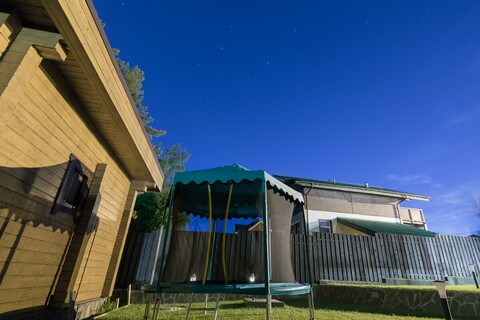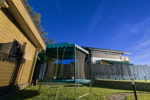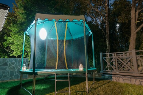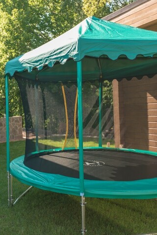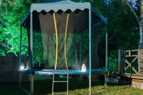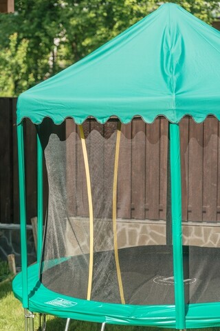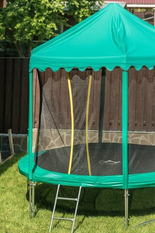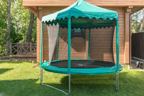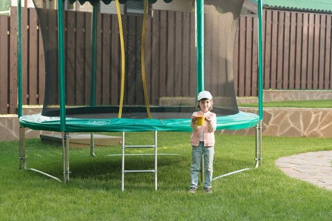 Сочный зеленый цвет батута прекрасно впишется на любом участке и привлечет детей;