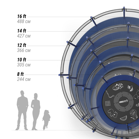 Предлагаем посмотреть на батут совершенно по-новому! Теперь это не только веселый спортивный снаряд, но еще и целая игровая комната! Инновационные батуты UNIX Line SUPREME GAME (4 in 1) - это уникальные в своем роде батуты для игр и творчества! Благодаря особой пропитке прыжкового полотна, рисунки получаются яркими и легко стираются влажной тканью или губкой. Мелки для рисования поставляются в комплекте с батутом в стильном и удобном мешочке. Основные игры на батутах UNIX Line SUPREME GAME (4 in 1): «Лабиринт». Данная игра лучше всего подходит для двоих, когда один игрок перекрывает проходы создавая лабиринт, а другой игрок пытается его пройти. Второй вариант игры – найти путь от одного животного к другому. «Крестики-нолики». Всем известная игра, давно полюбившаяся детям и взрослым «Раскрась животное». Все изображения на прыжковом полотне разработаны таким образом, чтобы их могли разукрасить даже самые юные художники, но стоит включить воображение, например, добавить тени и изобразить детали, как животные буквально «оживают», поэтому данное занятие придется по вкусу и более опытным любителям живописи. «Нарисуй сам». Для реализации самых интересных идей дизайнеры батутов UNIX Line SUPREME GAME (4 in 1) специально оставили пустые места на прыжковом полотне. Полная свобода творчества, ограничивающаяся лишь фантазией художника. (!) для рисования на прыжковом полотне, необходимо использовать только мелки для асфальта (!) ручки, карандаши, маркеры, фломастеры и иные пишущие средства запрещены для использования на прыжковом полотне _______________________________________ Батуты UNIX Line премиальной серии SUPREME разработаны для ежедневного использования детьми и взрослыми, устойчивы к неблагоприятным погодным условиям и соответствуют международным стандартам качества ISO 9001. Металлический каркас батутов выполнен из особо прочной гальванизированной стали толщиной до 2 мм с использованием новейшей системы креплений деталей рамы батута «X-Conneсtor» (толщина стали 2.4 мм), что обеспечивает высокую надежность рамы и уровень безопасности пользователя, максимально допустимый вес которого, в зависимости от модели (размера), может достигать 180 кг. Гарантия на раму 2 года!!! Прыжковое полотно премиальных батутов UNIX Line SUPREME обладает повышенной износостойкостью благодаря высокой плотности волокон полипропилена (перматрон), из которых состоит само полотно. Защитный мат для пружин, расположенный по периметру батута, состоит из четырех слоев, обшитых ПВХ материалом, плотностью 150 г/см3 и надежно закрывает пружины. Помимо верхней защитной сетки, все батуты премиального модельного ряда UNIX line оборудованы нижней сумкой для хранения обуви и лестницей для удобства пользования. Специальные крепления батута к земле (колышки) не входят в комплект, рекомендуем приобрести отдельно.