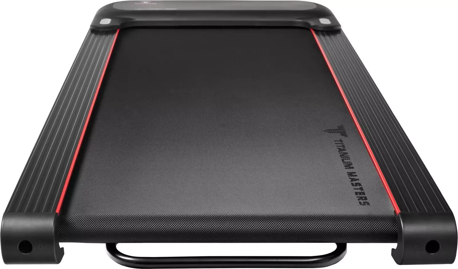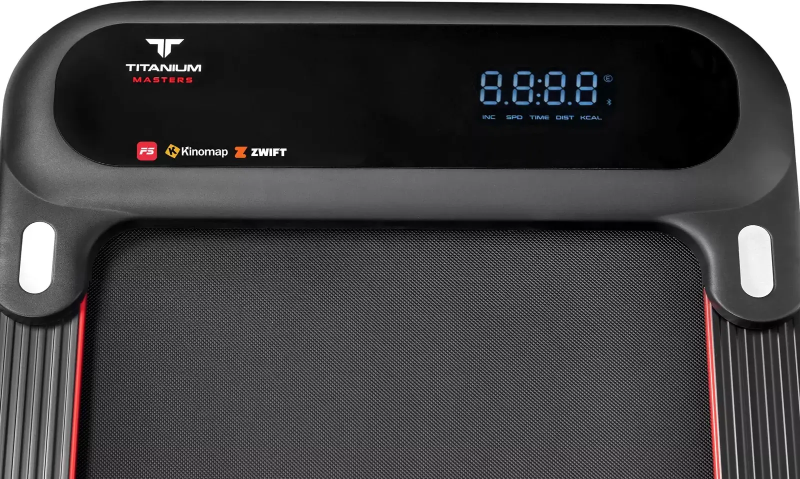 Беговая дорожка Titanium Masters Slimtech S130 относится к новому классу компактных беговых дорожек с электрическим углом наклона. За счет изменяемого угла наклона можно существенно разнообразить тренировочный процесс и увеличить его общую эффективность – сжигается больше калорий, активнее загружаются мышцы ног и ягодиц, уменьшается время тренировки. Подключение изменяемого угла наклона позволяет увеличить нагрузку в режиме ходьбы, не переходя на бег – обычно это востребовано людьми пожилого возраста, пользователями с проблемными суставами, реабилитационными задачами и всеми другими ситуациями, где бег противопоказан или недоступен из-за физических кондиций. За движение Titanium Masters Slimtech S130 отвечает надежный двигатель надежный, проверенный временем двигатель японской Fuji Electric мощностью 1,5 л.с. постоянного тока (2,5 л.с. на пике). Скорость регулируется в диапазоне от 0,8 до 8 км/ч - на максимуме этого вполне хватает для бега трусцой. Размеры бегового полотна составляют 108 см. в длину и 44 см. в ширину - этого достаточно для ходьбы и бега с небольшой скоростью. Ширина 44 см является редкостью для такого класса беговых дорожек и позволяет комфортно и безопасно заниматься – стопы всегда будут находиться внутри беговой зоны, вероятность заступа практически исключена. Дорожка обладает достойной для своего класса амортизацией, состоящей из 4 плоских амортизаторов, поперечной поролоновой прокладки и 2-х прорезиненных опор. Для создания дополнительной мягкости лучше заниматься на специально предназначенном для этого полиуретановом коврике для фитнес-оборудования. Беговая дорожка Titanium Masters Slimtech S130 требует минимум места для использования и хранения. В рабочем состоянии размер тренажера составляет 133 см. в длину и 56 см. в ширину – даже в самой малогабаритной квартире легко найдется место для тренировки. В сложенном виде толщина беговой дорожки составляет всего 16 см – ее можно положить под кровать или прислонить к стене в горизонтальном виде, для этого предусмотрены специальные прорезиненные опоры. Тренировочный компьютер представляет собой LED дисплей c яркими светло-голубыми светодиодами. Он встроен в кожух моторного отсека и показывает такие параметры как скорость, дистанцию, время, угол наклона и сожженные калории. Здесь также есть 3 программы обратного отчета, когда тренировка заканчивается по достижении целевого показателя (дистанция, время или калории). Управление всеми функциями консоли происходит через пульт дистанционного управления. В консоль дорожки установлен Bluetooth модель для интеграциями с рядом приложений через смартфон. Первое приложение – Fitshow – предоставляет набор дополнительных тренировочных программ, сохраняет и анализирует статистику. Здесь можно соревноваться с другими пользователями, создать сообщество и добавить друзей, поделиться результатами в соцсетях. При желании можно управлять тренажером прямо со своего смартфона. Если Вы занимаетесь спортом на улице – отлично, данные не пропадут и синхронизируются с результатами тренировки на беговой дорожке. Второе высокотехнологичное приложение Zwift является по сути симулятором виртуальной реальности и ориентировано на велосипедный спорт, бег и тренировки на тренажерах. Это действительно классное приложение с невероятным уровнем визуализации и погружения.
