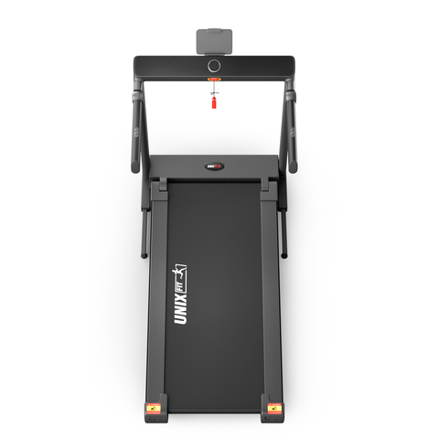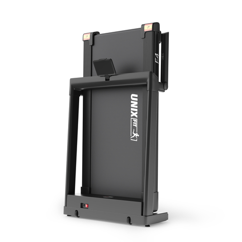Беговая дорожка UNIX Fit Hi-tech F4 Space Grey— это идеальное сочетание стильного дизайна с мощным функционалом. Вы сможете заниматься спортом, не выходя из дома или офиса, кардиотренажер UNIX Fit Hi-tech F4 станет вашим персональным тренером в достижении фитнес-целей! Самая большая дорожка вертикального ультракомпактного хранения с габаритами в собранном виде 151,4 х 80,5 х 32,1 см. Размеры электрической беговой дорожки в рабочем состоянии составляют 158,2 х 80,5 х 123,3 см, позволяя ей прекрасно вписаться в домашнее или рабочее пространство. Мощный двигатель Shlümdenger Electric обеспечивает пиковую мощность в 3,5 л.с., разгоняя дорожку до 18 км/ч, что гарантирует надежность и высокую производительность во время интенсивных тренировок. Двигатель спортивного тренажера оснащен воздушными вентиляторами для охлаждения, что предотвращает перегрев и значительно увеличивает срок службы устройства.   Большое двухслойное беговое полотно профессионального размера 135 x 50 см и толщиной 1,5 мм имеет антискользящее покрытие, что увеличивает сцепление с поверхностью во время тренировок, способствуя комфорту и безопасности спортсмена. Дека толщиной 15 мм обладает отличным амортизационным эффектом, а благодаря 8 бочкообразным эластомерам и 2 пружинным амортизаторам нейтрализует ударную нагрузку до 95%, снижая воздействие на позвоночник и суставы. Дорожка UNIX Fit Hi-tech F4 Space Grey прекрасно подойдет как начинающим, так и опытным спортсменам разных возрастов. Тренажер оснащен 2 пневмобаллонами для интеллектуального изменения покрытия для бега. 4 уникальные режимы амортизации: режим дороги, режим резиновой дорожки, режим газона или режим пляжа помогут подобрать вам оптимальный вариант для бега или ходьбы. Дорожка выполнена из материалов премиального качества и способна выдержать вес пользователя от 150 кг, что гарантирует стабильность и безопасность во время интенсивных тренировок.  С современной системой шумоподавления Smartex и высококачественным материалам дорожка работает практически бесшумно, не превышая 60 ДБ.  Вы можете заниматься в любое время суток, не беспокоя соседей или членов семьи, даже в небольших помещениях. Результаты тренировок не заставят себя долго ждать, ведь дорожка является отличным кардиотренажером для укрепления рук и ног, улучшения сердечно-сосудистой системы и повышения выносливости. Физическая активность снижает уровень стресса, что так необходимо в условиях современного ритма жизни. С помощью LED-экрана можно с легкостью контролировать тренировки, ведь на экране будут отображаться время, дистанция и калории, а электронный диммер даст возможность отследить пульс, дистанцию, скорость и другие показатели. Диммер переключает скорость и меняет режим амортизации. Пульс измеряется с помощью сенсорных датчиков на поручнях. Измерение частоты сердцебиения происходит, когда пользователь держится за пульсометры на поручне обеими руками. Система автоматически определяет частоту сердцебиения и отображает ее на консоли. Полуавтоматическая функция смазывания бегового полотна поможет с легкостью обслуживать беговую дорожку, достаточно залить масло в специальное отверстие. Важной деталью данного фитнес-тренажера является наличие съемной подставки под электронные устройства, что позволяет совмещать тренировки с использованием планшета и других устройст