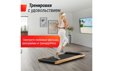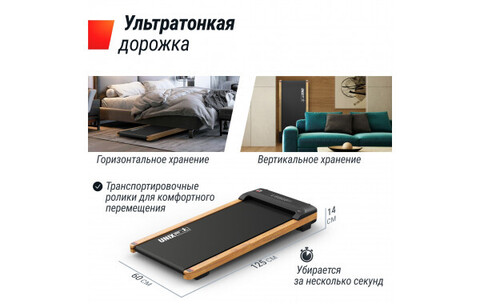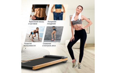 Беговая дорожка UNIX Fit Wood Way 3.0  — это превосходный вариант для ваших домашних тренировок и достижения фитнес-целей. Дорожка UNIX Fit Wood Way 3.0 сочетает в себе элегантный дизайн из экологичного материала, высокую функциональность и компактный размер. Вы сможете наслаждаться тренировкой, не покидая комфортную домашнюю обстановку.  Благодаря мощному двигателю Shlümdenger Electric с воздушным охлаждением и системой шумоподавления Smartex с пиковой мощностью 2,5 л.с., тренажер гарантирует надежность и высокую производительность дорожки даже во время интенсивных тренировок и разгоняет ее до 9,5 км/ч. Результаты тренировок  не заставят себя долго ждать, ведь дорожка является отличным кардиотренажером для укрепления рук и ног, помогая улучшить общее физическое состояние и привести себя в отличную форму. Беговое полотно 110 х 45 см, толщиной 1,5 мм с улучшенным амортизационным эффектом дает возможность заниматься, как ходьбой, так и бегом трусцой с максимальным комфортом, поэтому дорожка идеально подойдет, как для новичка, так и для опытного пользователя. Дека 15 мм с 6-точечной амортизацией снижает нагрузку на позвоночник и суставы, делая занятия более безопасными. Допустимый вес пользователя 110 кг является прекрасным показателем для такой компактной модели, обеспечивая долговечность и надежность в использовании тренажера. Благодаря компактным размерам, вы можете легко убрать мини дорожку за дверь или под кровать после тренировки и освободить пространство. Для управления тренировками можно подключиться к фитнес-приложению FitShow (подключение через Bluetooth) и отслеживать свои результаты. LED дисплей поможет с легкостью контролировать тренировки, ведь на экране поочередно будет отображаться время, скорость, дистанция и калории. Удобный пульт дистанционного управления оснащен возможностью остановки, запуска, увеличения и уменьшения скорости тренажера, что делает управление дорожкой простым, но в то же время эффективным.  Беговая дорожка оснащена функцией энергосбережения. Если беговая дорожка не получала входящий сигнал в течение 10 минут, она перейдет в режим энергосбережения. Пока беговая дорожка находится в этом режиме, дисплей будет отключен. Чтобы снова включить его, нажмите любую кнопку.  Современный и привлекательный дизайн домашнего кардио тренажера UNIXFIT не останется незамеченным и станет стильным элементом интерьера. Для удобного перемещения и хранения, тренажер оснащен транспортировочными колесами. Вы с легкостью поместите дорожку под кровать или вдоль стены, что является огромным преимуществом для небольших помещений.  Компактная беговая дорожка не требует сборки, поэтому получив ее, вы сможете сразу же приступить к тренировкам. В комплекте идет силиконовая смазка, чтобы подготовить дорожку к первому запуску, а благодаря русифицированной инструкция, вы легко найдете общий язык с тренажером при первом же знакомстве. Беговая дорожка UNIX Fit Wood Way 3.0 – отличный выбор для всех, кто хочет оставаться физически активным и поддерживать высокий уровень здоровья и хорошего настроения, не выходя из дома! ДОПОЛНИТЕЛЬНЫЕ ХАРАКТЕРИСТИКИ Материал рамы  сталь Цвет  Светлое дерево / Черный Приложения для синхронизации  FitShow (подключение через Bluetooth) Уровень шума  низкий Рама  особопрочная с двухслойной покраской Двигатель  1.75 л.с. Shlümdenger Electric