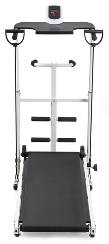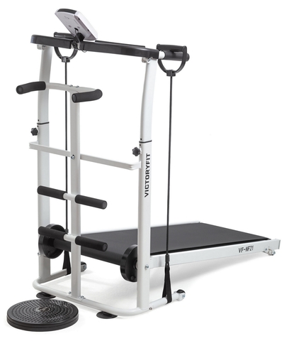 Беговая дорожка VictoryFit VF-NF21. Компактная модель механической дорожки без двигателя. Регулируемая высота поручней от 92-110 см от пола. В комплекте идут 2 эспандера (длина 90 см) и диск здоровья (диаметр 25 см). Сзади дорожки расположены поручни для занятий на диске. Спереди расположены валики для фиксации ног для упражнений на пресс. Компьютер отображает пройденную дистанцию, время, скорость, калории. ДОПОЛНИТЕЛЬНЫЕ ХАРАКТЕРИСТИКИ Мощность двигателя: Без двигателя Питание: 1 батарейка ААА (в комплект не входит) Наклон бегового полотна: Механический, 2 положения Сертификат соответствия: Есть Показания дисплея: время скорость дистанция калории Комплектующие: 2 эспандера диск здоровья
