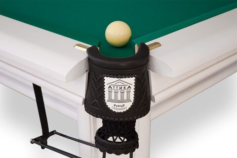 На ваш выбор – любой оттенок бильярда из нашей палитры, но мы рекомендуем кроме белоснежного, цвет 22/4 – темный с серебряными кольцами на ногах. В белом же цвете деревянные поверхности стола «Аттика» имеют удивительное сходство с мрамором, лучшие сорта которого добывают в одноименном регионе Греции. Отборный массив дуба, ясеня или ольхи — материалы, гарантирующие прочность и долговечность стола даже при самых интенсивных спортивных нагрузках. Выбор материала изготовления обеспечивает покупку оптимального по стоимости оборудования. Для приобретения доступны киевница и светильник «Аттика» в таком же стиле.