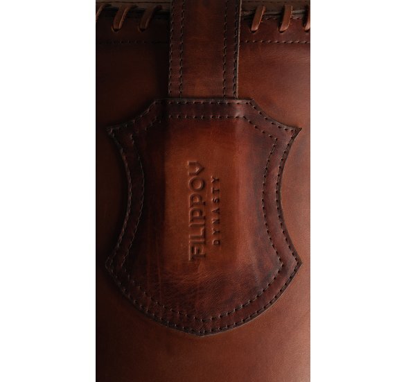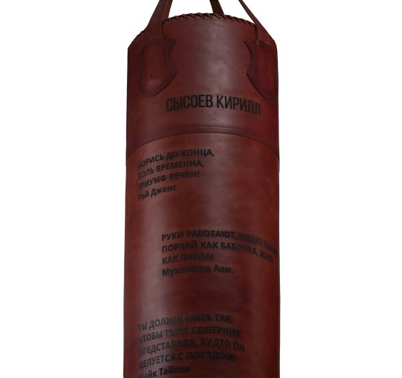 Мешок боксерский ELITE 1995 FILIPPOV. Изделия элитной серии изготовлены из кожи высшей категории "TrygSol", итальянского производства. Качественная выделка кожаного полотна является гарантией сохранения изделия на долгие годы.Незначительные изьяны на коже подчеркивают ее натуральность и никоим образом не влияет на прочностные характеристики снаряда. Изделие тонируется смесью натуральных масел и восков и приобретает свою неповторимую индивидуальность,кожа остается живой и со временем красиво стареет. Идеальные швы толстой капроновой нитью надежно фиксируют детали изделия. Подвесная система на основе капроновых строп обшитых кожей абсолютно надежна. В отличии от цепей эта система бесшумна. Важным аспектом мешков элитной серии является наполнение. В изделиях по диаметру вставлен многослойный демпформирующий вкладыш, который обеспечивает абсолютный комфорт при работе по снаряду. Наполнитель в мешке имеет среднюю степень плотности и позволяет работать даже неподготовленным спортсменам, снижая нагрузку на суставы. Изделие выглядит брутально и дорого. Предназначено для ценителей формы и содержания. Используется в домашних спортзалах, элитных клубах и офисах руководителей. Снаряд может быть именным. Методом горячего тиснения наноситься фамилия обладателя, личный герб или бренд компании, клуба. Гарантия 10лет. Срок эксплуатации данной серии изделий не ограничен. "Спорт может выглядеть дорого" FILIPPOV-DYNASTY РОССИЯ