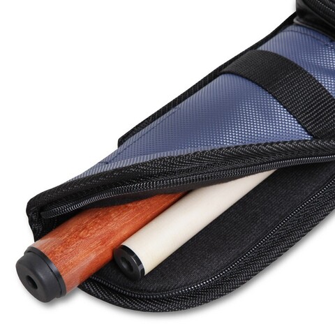 Снаружи чехла имеется небольшое накладное отделение черного цвета, которое можно использовать для хранения личных вещей или бильярдных аксессуаров. Внутреннее отделение и наружное закрываются на замки-«молнии».