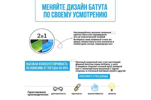 Покрытие - ПВХ с мелкоячеистым армированием, устойчив к УФ-излучению. Наполнитель - увеличенный слой EPE-пены, Двойная оцинковка + Порошковое окрашивание