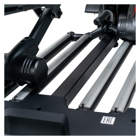 Эргономичное положение тренирующегося и амплитуда движения, создают правильную биомеханику движения как верхнего плечевого пояса и рук, так и ног, обеспечивая максимальную эффективность и безопасность тренировки. Мягкие педали, расположены под отрицательным углом, предотвращают онемение ахиллово сухожилия. Расстояние между педалями (Q-Factor) всего 34 мм обеспечивают естественное положение ног и это один из самых лучших показателей в своем классе.