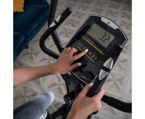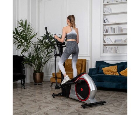 Среднегабаритный эллиптический тренажер для домашнего использования. Тренажер имеет магнитную систему нагружения, с механической регулировкой нагрузки. 8 фиксируемых положений нагрузки с помощью удобной ручки на стойке тренажера.