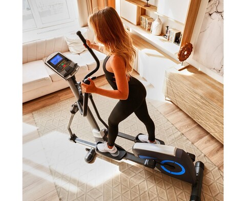 Эллиптический тренажер с задним расположением маховика для домашнего использования. Тренировка на эллиптическом тренажере - это прекрасная альтернатива бегу трусцой или ходьбе, с разницей в более высоком потреблении калорий. Благодаря интенсивному движению рук верхние участки тела напрягаются, все тело укрепляется. Повышается эффективность тренировки, целенаправленно сжигаются жировые запасы.