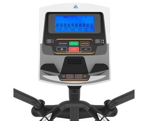 На тренажере установлен простой и современный тренировочный компьютер с ЖК-дисплеем. Управление с помощью кнопок. На дислее размером 125 х 57 см отображается весь необходимый список параметров тренировки. Измерение пульса осуществляется с помощью встроенных датчиков на дополнительных поручнях.