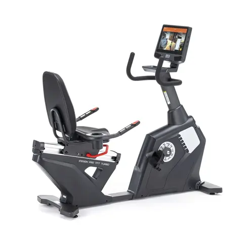 Велотренажер BRONZE GYM R1000M PRO TFT TURBO NEW — это не просто велотренажер, а настоящее воплощение передовых технологий и комфорта, созданное для профессионального использования в фитнес-клубах, тренажерных залах и других коммерческих учреждениях. Эта новинка из 1000-й серии кардиотренажеров от BRONZE GYM не только впечатляет своим стильным и элегантным дизайном, но и предлагает высочайший уровень функциональности и удобства для пользователей. Велотренажер BRONZE GYM R1000M PRO TFT TURBO NEW представляет собой вершину инженерной мысли в мире горизонтальных велотренажеров. Этот тренажер предназначен для тех, кто стремится к максимальным результатам в тренировках и не готов идти на компромиссы. Обновленная модель сочетает в себе все передовые технологии и обеспечивает максимальную эффективность каждой тренировки. Электромагнитная система нагружения EMS является ключевым элементом этого тренажера, предлагая 32 уровня нагрузки, которые можно легко регулировать в зависимости от ваших потребностей и целей. Такая система обеспечивает идеальное сочетание плавности хода и устойчивости, позволяя пользователю выбрать нужный режим — будь то легкая кардио-тренировка, интенсивные интервальные тренировки или занятия для сжигания жира. С маховиком весом 8 кг, каждая тренировка будет проходить гладко и комфортно. Одной из выдающихся особенностей BRONZE GYM R1000M PRO TFT TURBO NEW являются педали с фиксаторами. Эти педали снабжены надежными ремешками, которые надежно фиксируют ваши стопы и предотвращают их скольжение даже при самых интенсивных тренировках. Такой подход гарантирует не только безопасность, но и максимальную эффективность упражнений, позволяя сосредоточиться на достижении ваших фитнес-целей без беспокойства о корректировке положения стопы. 15,6-дюймовый сенсорный TFT дисплей обеспечивает интуитивно понятный интерфейс и четкое отображение всех необходимых данных. Обновленная консоль позволяет отслеживать время, скорость, дистанцию, калории, пульс, ватты, профиль нагрузки и уровень наклона. Все это делает управление тренажером простым и удобным, обеспечивая вам полное представление о вашей тренировке и прогрессе. 29 программ тренировок предоставляют вам широкий выбор режимов и сценариев для достижения различных фитнес-целей. Будь то кардио-тренировка, интервальные сессии или специализированные программы для сжигания жира, R1000M PRO TFT TURBO NEW удовлетворит любые ваши потребности. Доступ к ручному режиму и целевым программам позволяет еще более точно настроить тренировки под ваши личные цели и желания. Для вашего комфорта и удобства, BRONZE GYM R1000M PRO TFT TURBO NEW оснащен беспроводной зарядкой для мобильных устройств, а также подставкой под телефон, что позволяет оставаться на связи и заряжать гаджеты во время тренировки. Транспортировочные ролики и компенсаторы неровностей пола упрощают установку и перемещение тренажера, а прочная конструкция поддерживает максимальный вес пользователя до 180 кг, что подчеркивает его надежность и долговечность. С размерами 165 × 71 × 143,5 см в рабочем состоянии и 173 × 38 × 83 см в упаковке, этот велотренажер гармонично вписывается в любой фитнес-зал, предлагая идеальное сочетание компактности, прочности и функциональности. BRONZE GYM R1000M PRO TFT TURBO NEW — это идеальный выбор для тех, кто стремится к высшему уровню фитнеса и ищет тренажер, который соче