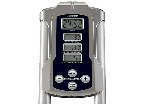 Spirit XG200 имеет очень простую в использовании консоль, которая очень напоминает компьютер модели CG800. Дисплей тренажера дает Вам необходимую информацию о прогрессе во время тренировки, так что Вы всегда будете контролировать время занятия, расстояние, частоту сердечных сокращений и количество оборотов в минуту. Частота сердечных сокращений измеряется с помощью датчиков, которые встроены в неподвижные ручки. Кроме того, для быстрой остановки, предусмотрен удобно расположенный тормозящий механизм, учитывая высокую инерцию маховика, система торможения позволяет легко и быстро сделать остановку тренажера.
