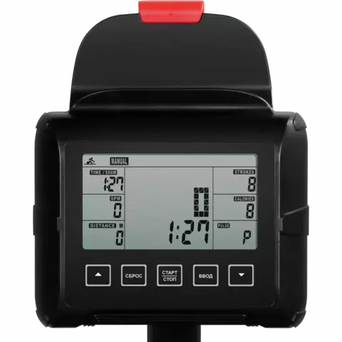 Компьютер тренажера оснащён контрастным LCD дисплей 5” с качественным изображением и удобным русифицированным управлением. Лаконичный дизайн и простой интерфейс позволяют легко выбрать и настроить необходимые параметры тренировки. Программный пакет включает разносторонние целевые тренировки на повышение выносливости, координации, поддержания физической формы и здоровья, режим соревнования с виртуальным соперником разной сложности и совместимость с приложением Kinomap / iConsole+.