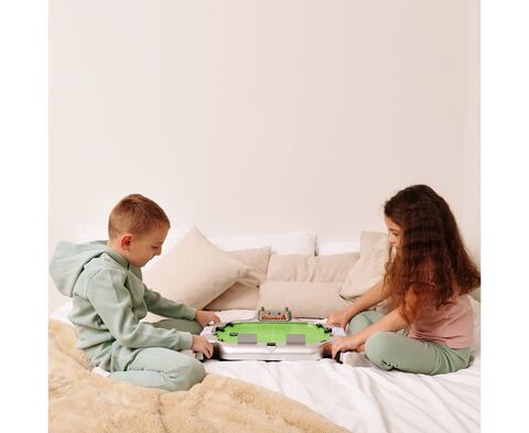 Игровое поле размерами 39,5 х 26,5 см из полипропилена покрыто ПВХ. Полипропилен более гладкий и прочный, в отличие от МДФ, благодаря чему шайбы отлично скользят по полю, а стол прослужит вам продолжительное время.