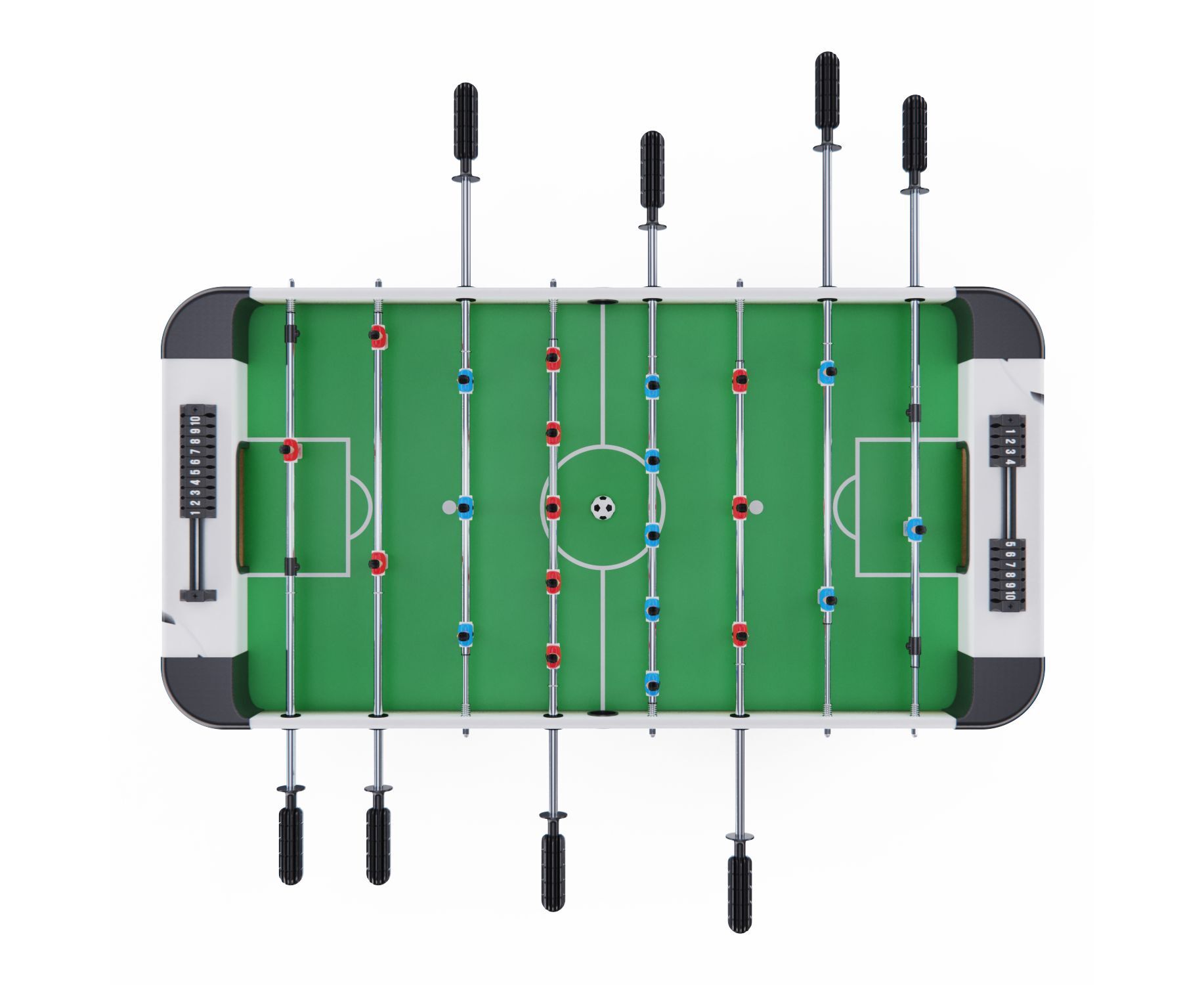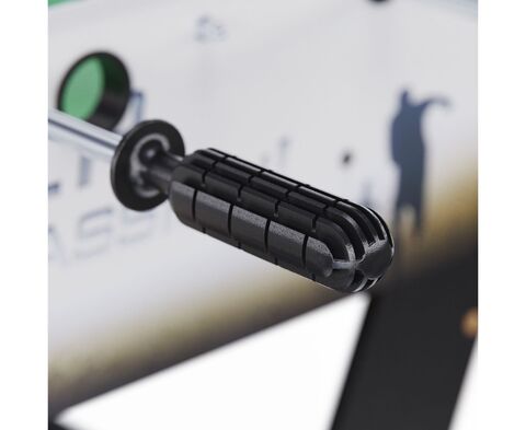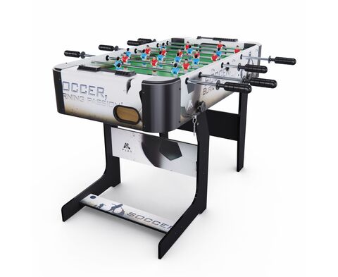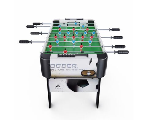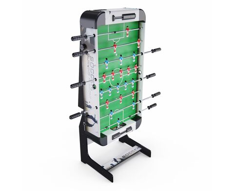Игровой стол-футбол DFC SOCCER BP SB-ST-29398 для домашнего использования. Складная модель. Боковые стороны из МДФ ламинированным ПВХ высотой 19,5 см и толщиной 12 мм. Стороны со стороны игроков высотой 19,5 см и толщиной 9 мм. L-образная ножка из МДФ толщиной 15 мм, средняя – 12 мм. Телескопические стержни диаметром 13 мм с хромированным покрытием. В комплекте 2 футбольных мяча 31 мм диаметром.