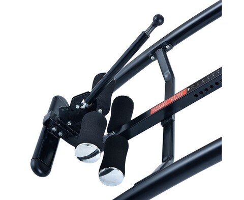 Безопасность во время занятий обеспечивается прочной стальной рамой, толстой и удобной обивкой, держателем для ног и надежным замком.