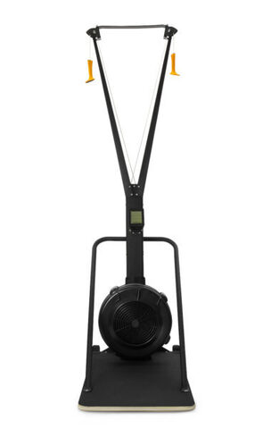 Лыжный тренажер VictoryFit VF-Ski100. Нагрузка происходит за счет аэродинамической системы сопротивления, создаваемой воздухом. В тренажере предусмотрено до 10 уровней нагрузки. Нагрузка регулируется за счёт интенсивности движений рук пользователя (высокий уровень при резких движениях и низкий при плавных). Техника тренировки соответствует технике бега на лыжах, эргономичные рукоятки на прочнейших нейлоновых тросиках максимально точно имитируют биомеханику движений рук в естественных условиях лыжной тренировки. Тренажер может устанавливается на специальную подставку (входит в комплект), а также может быть закреплен к стене. Электронный монитор с точностью измеряет все необходимые показания и выводит на дисплей. В частности, пройденное время, текущую скорость, пройденную дистанцию, количество затраченных калорий, пульс и количество взмахов. Тренажер станет отличным подспорьем для лыжников в межсезонье, а также для различных категорий спортсменов, желающих развить свою выносливость и силу верхнего плечевого пояса. Цена за тренажер указана с учетом подставки.