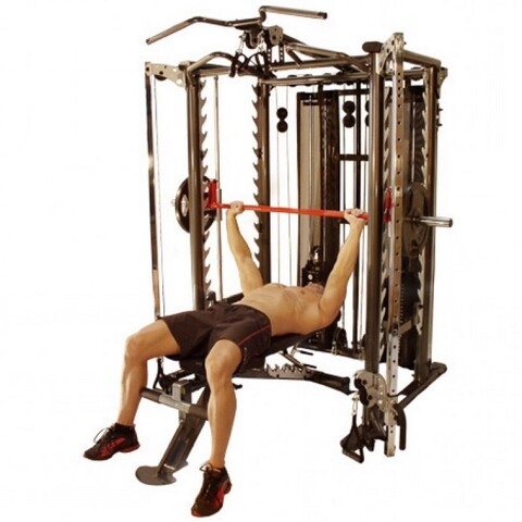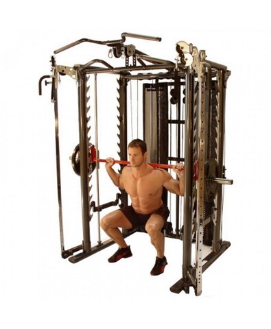 Движение грифа плавно за счет специальных направляющим, по которым он проходит. Благодаря такому свойству, абсолютно исключена потеря равновесия во время занятий, что убирает необходимость прибегать к помощи страхующего. Используйте блины или весовые стеки в качестве отягощения для усиления эффекта. С таким помощником возможно для выполнения просто нереальное количество упражнений: жимы под разными углами, тяга со штангой, приседания, сведение рук перед собой, тренировки икроножных мышц, становая тяга. Перечислять можно бесконечно.