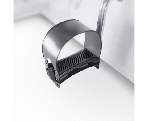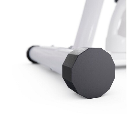 Педальный узел оснащен однокомпонентным шатуном, а система нагрузки - ременная. Вес маховика составляет 1 кг, инерционный вес - 2 кг. Велотренажер имеет бесступенчатую систему нагрузки, которую можно регулировать механически. Компенсаторы неровностей пола помогут установить тренажер на любую поверхность.