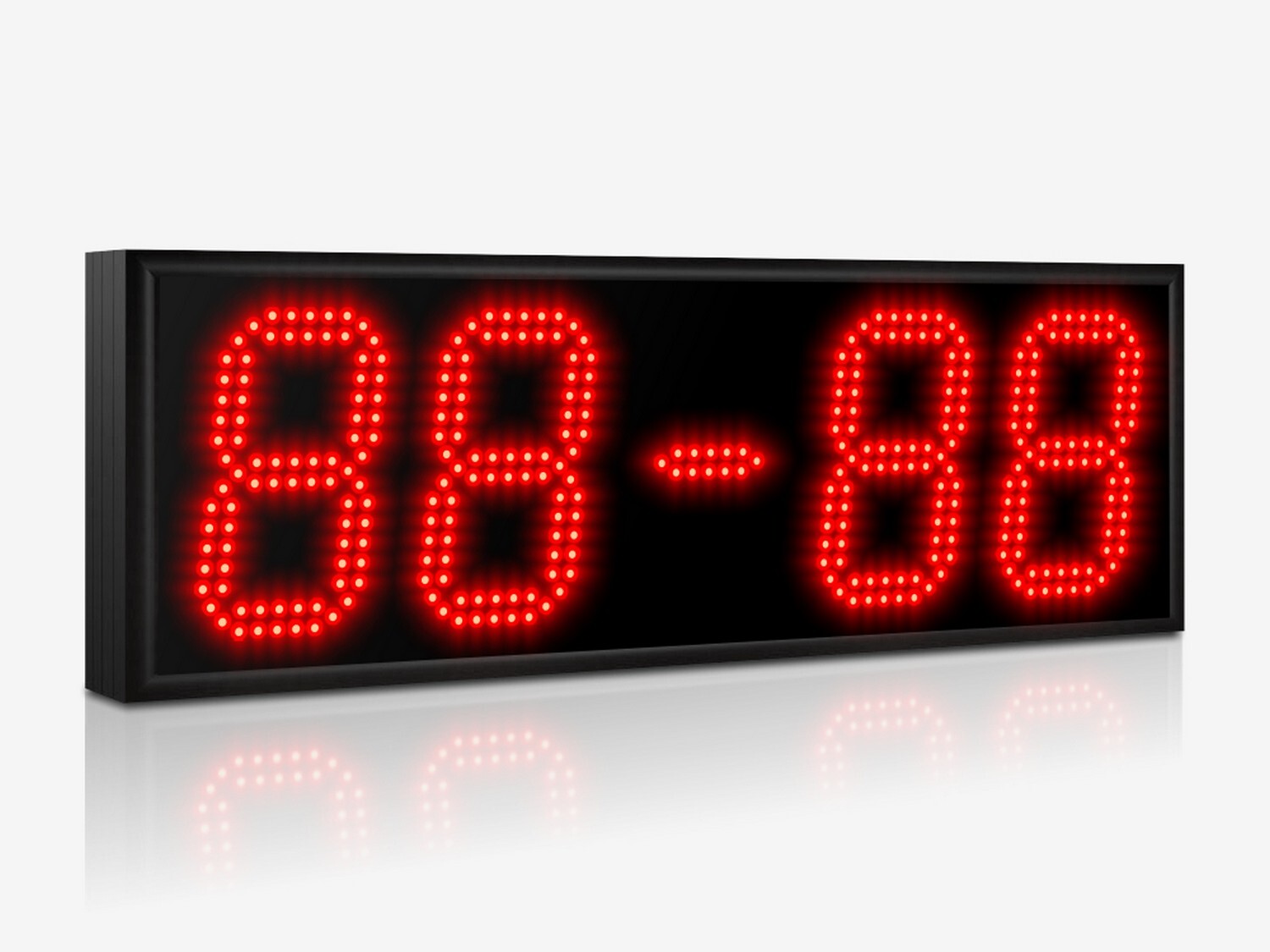 Электронное табло Импульс-713-D13x4 может быть выполнено как для установки на улице (модификация ER2), так и для помещений спортивного комплекса (модификация R).