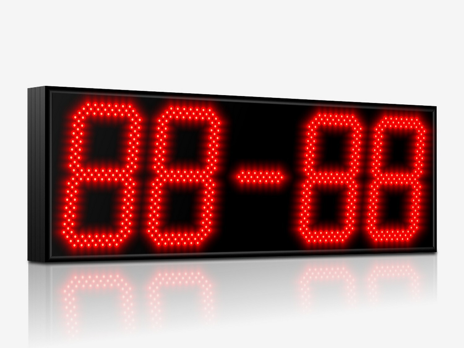 • Отображение игрового счета для обеих команд в 2-разрядном цифровом формате (88-88), высота цифр 210 мм.