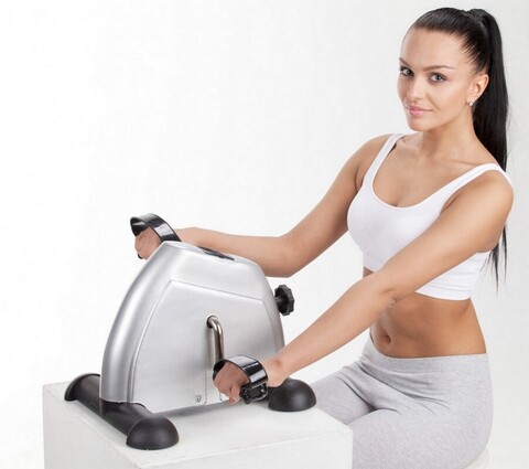 Компактный домашний велотренажер можно использовать как для тренировки рук, так и ног, Его создатели убрали все лишнее и оставили только самую необходимую часть велотренажера - педали, заменив остальное широким дисплеем, который показывает время, дистанцию и количество потраченных калорий, В отличие от обычных велотренажеров можно использовать не только для тренировки ног, но и рук, Тренажер оснащен специальным колесиком, с помощью которого Вы ожете регулировать сопротивление педалей,