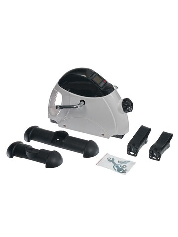 Этот небольшой велотренажёр можно установить не только на полу, но и на любой другой ровной поверхности и использовать его не только для тренировки ног, но и рук: просто ослабьте натяжение ремня до необходимого и крутите педали,