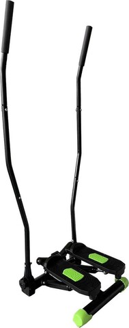 У министеппера стальная, устойчивая база, которая выдерживает вес до 100 кг. Система нагружения осуществляется при помощи 2 гидравлических цилиндров. Большие педали имеют нескользящее покрытие, также предусмотрена возможность регулировки высоты педалей. Поручни степпера регулируются по углу наклона. Функциональный тренажер имеет цифровое устройство контроля, состоящее из дисплея и кнопок управления. На нем отражается время, количество шагов, ритм, калории, режим сканирования. Поворотный министеппер с поручнями отличается эргономичным дизайном и отлично вписывается в домашний интерьер.