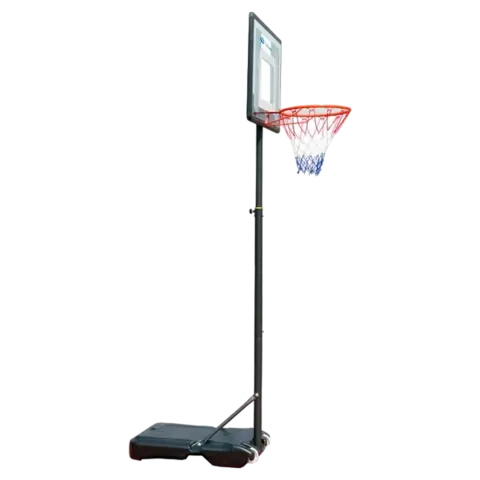 Имеет устойчивую конструкцию и усиленное металлическое кольцо для активной игры. Емкость основания заполняется 35 кг воды или песка. Встроенные в основание транспортировочные колеса облегчают транспортировку.