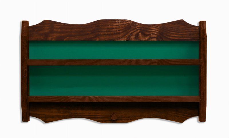 Настенная полка, предназначенная для хранения шаров и треугольника. Надежная и практичная - эта полка отлично справляется с перепадами влажности и температуры, не деформируется и не теряет своего внешнего вида. Две горизонтальные поверхности полки снабжены продольной нишей для лучшей фиксации шаров. Задняя панель обтянута сукном классического зеленого цвета. В нижней части полки имеется крюк для подвешивания треугольника.