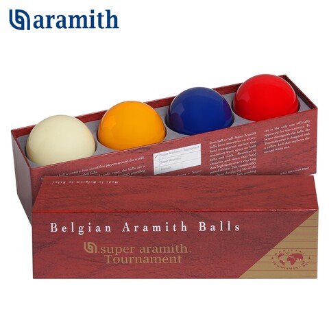 Карамбольные шары производства Saluс проходят строжайший технологический контроль, обеспечивающий их идентичность, внутреннюю однородность материала и превосходный внешний вид. Для официальных соревнований UMB рекомендует использовать наборы Super Aramith Tournament либо Super Aramith DeLuxe.