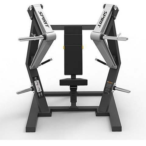 Широкий жим от груди от Spirit имеет сверхпрочную конструкцию весом 209 кг — надежный тренажер для спортивных клубов, фитнесс залов и т.д. Рукоятки разведены более широко, благодаря чему тренажером могут пользоваться люди крупного телосложения. Большее количество движений по сходящейся траектории, чем при жиме в нижнем направлении. Хорошо заметная отметка на спинке поможет правильно расположить грудь относительно рукояток. Тело пользователя отклонено назад, что обеспечивает хорошую стабилизацию при поднятии большого веса.
