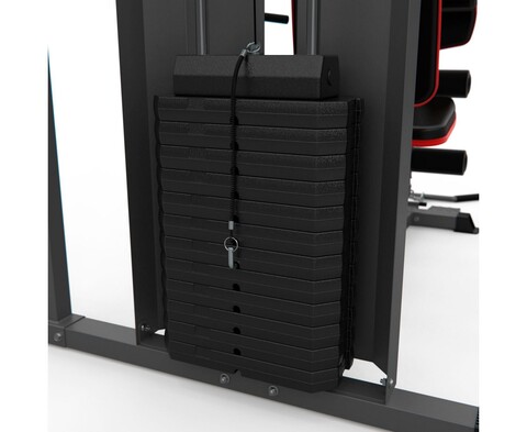 Многофункциональный силовой комплекс DFC D7004 оснащён множеством снарядов для упражнений на все группы мышц. Максимальный вес пользователя до 120 кг. Профиль основной трубы 70 х 50 х 1,5 мм. 11 весовых пластин в комплекте. Спинка регулируется по горизонтали на 3 уровня. Вес стека 72 кг, 1 блок – 6 кг.