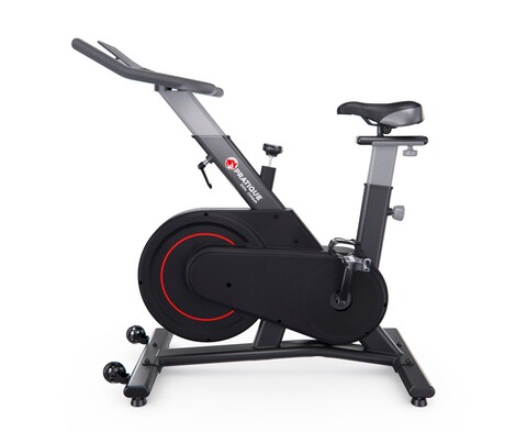 Маховик массой 15 килограмм обеспечивает плавный ход и регулировку интенсивности нагрузки. Возможность крутить педали в обе стороны добавляет разнообразия в тренировочный процесс. Ремень, обернутый вокруг маховика, обеспечивает уровень шума не более 52 дБ, делая спин-байк PRATIQUE идеальным вариантом для домашнего использования.