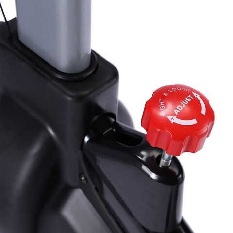 Вертикальный механический спин-байк с ременным типом привода и колодочной системой нагружения, Изменение нагрузки с помощью удобной рукоятки на корпусе тренажера,