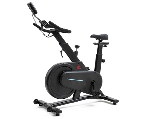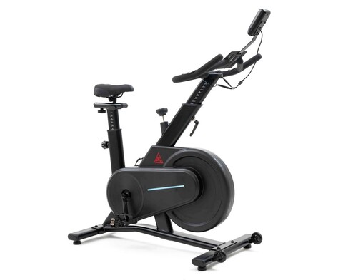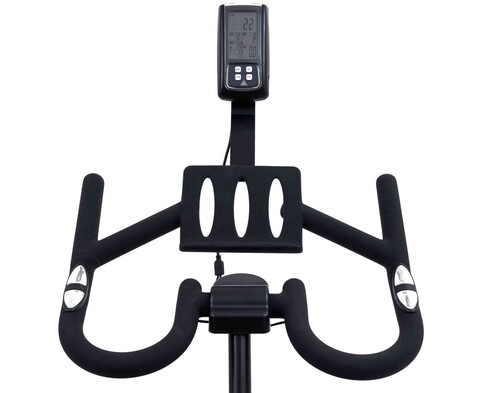 Тренировки на спин-байке укрепляют мышцы ног, ягодиц и живота, улучшают дыхательную систему и помогают сбросить лишний вес, Благодаря держателю для планшета вы можете читать  книги или отреть фильмы во время тренировок, Компенсаторы неровностей пола делают велотренажер устойчивым на любой поверхности, а транспортировочные ролики помогут легко переместить спин-байк,