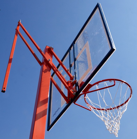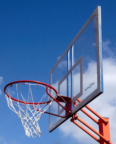 Стойка баскетбольная любительская разборная с возможностью пошаговой регулировки высоты кольца от 2,4 м. до 3,05 м. В комплект входят: основание, стойка, щит 1200х800 мм. (48'') из оргстекла 6 мм. на металлической раме, фиксированное кольцо 450 мм. (№7), сетка.