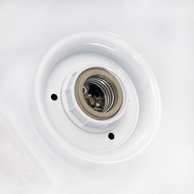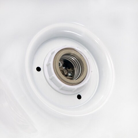 Металлический плафон светильника крепится с помощью пластикового кольца на патроне. Патрон керамический, для лампы с цоколем Е27. Применение керамических патронов увеличивает срок эксплуатации светильника.