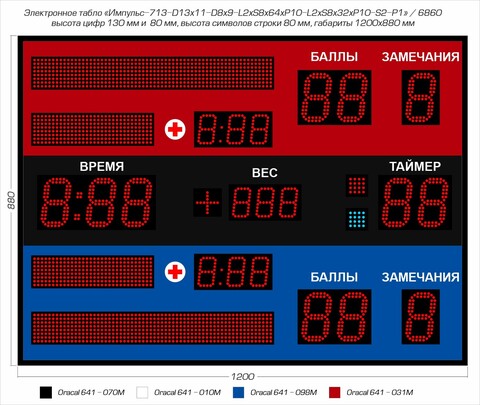 Спортивное табло для самбоИмпульс-710-D10x11-D8x9-L2xS8x64xP10-L2xS8x32xP10-S2-P1 можно дополнить звуковой сиреной, передвижной тележкой, дополнительными пультами и опциями управления.