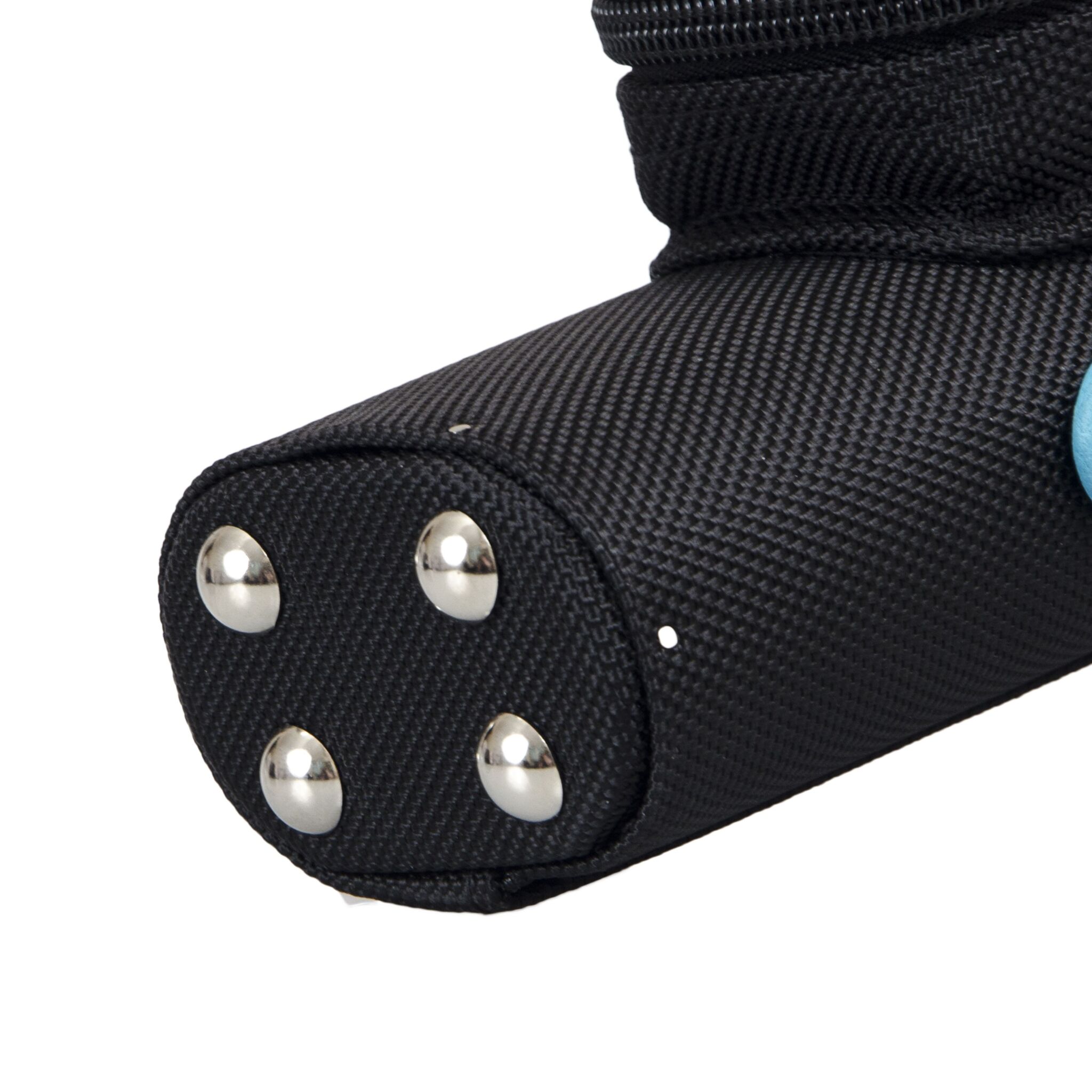 На дне с внешней стороны тубуса имеются ножки из стали. Вы можете ставить тубус на пол, не боясь испачкать или затереть материал. Благодаря ножкам, чехол устойчив в вертикальном положении.