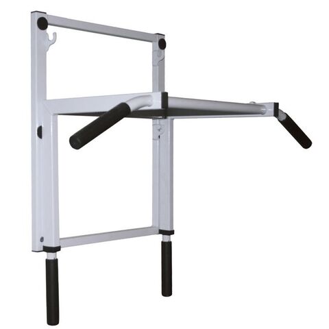 Цельносварное высокопрочное изделие. Крепление опорной рамки на стену в четырех - шести точках. Для СТ 023 - два положения - турник или брусья, повернув изделие на 90°. Два уровня по высоте: для турника и брусьев-пресс. Компактная, универсальная конструкция для тренировок со своим весом на классическое подтягивание, отжимание и упражнений на пресс с упором на локти.