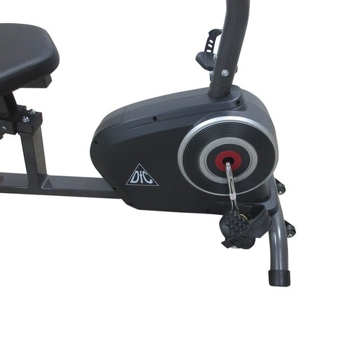 Велотренажер с удобной горизонтальной посадкой и бесшумной магнитной системой нагружения, Нагрузка имеет ручную регулировку с помощью ручки на стойке тренажера, 8 положений, Мягкое регулируемое сиденье с мягкой спинкой,