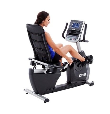 Горизонтальный велотренажер SPIRIT XBR95 оснащен встроенным генератором, тяжелым маховиком, хорошо читаемой консолью с голубой подсветкой и диагональю 7,5 дюймов,