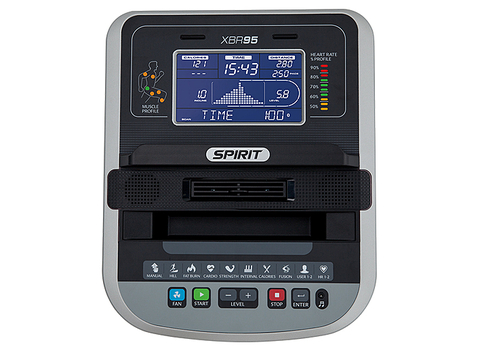 SPIRIT XBR95 — топовая модель линейки велотренажеров SPIRIT XBR, Тренажер имеет полный пакет тренировочных программ с возможностью индивидуальных настроек, отвечающих требованиям профессионального пользователя, Обеспечивая максимальный комфорт, в комплектацию тренажера включены такие опции как поворотный вентилятор, стойка для чтения, двойной держатель для принадлежностей и напитков,