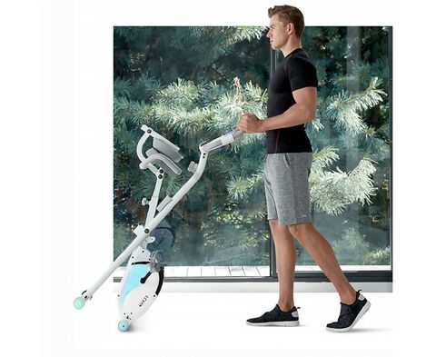 X-Bike LEXPA имеет компактные размеры в сложенном виде — 23 x 40 x 117 сантиметров, что позволяет легко хранить его даже в небольшом помещении. Транспортировочные ролики и компенсаторы неровности пола обеспечивают стабильность и безопасность во время занятий.